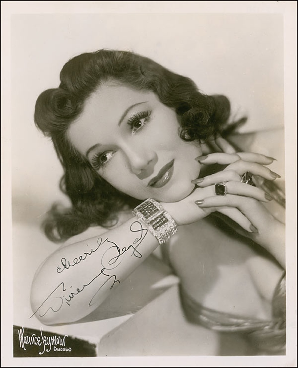 The diva of her time (1897–1992), Segal was a musical star and comedienne on the stage but made only five musical films. Vintage glossy 8 x 10 Seymour publicity photo, signed in-person in fountain pen. Reverse of photo bears collector’s stamp date of August 2, 1941, the date the signature was acquired. Scattered creases and surface marks, a few to facial area, otherwise fine condition. Pre-certified PSA/DNA and RRAuction COA.