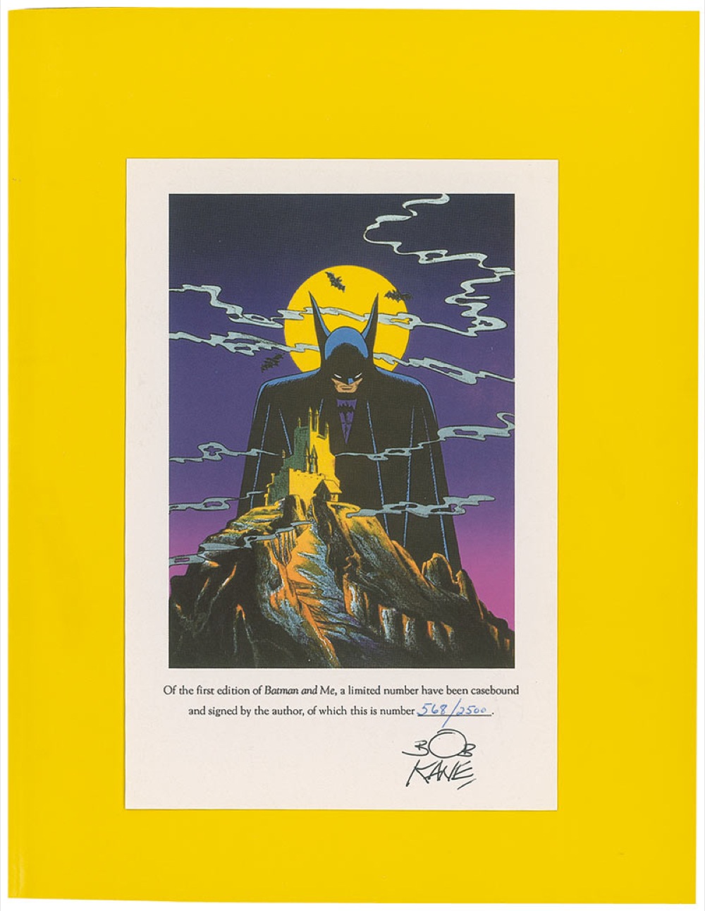 Signed book: Batman & Me. Limited signed first edition of 2500 copies (this copy No. 568). Forestville, CA: Ecliipse Books, 1989. Hardcover with dustjacket, 8.75 x 11.25, 156 pages. Signed in black ink on a specially printed pictorial bookplate tipped to the front free end page. In fine condition, with a bit of light wear to dustjacket. RRAuction COA.