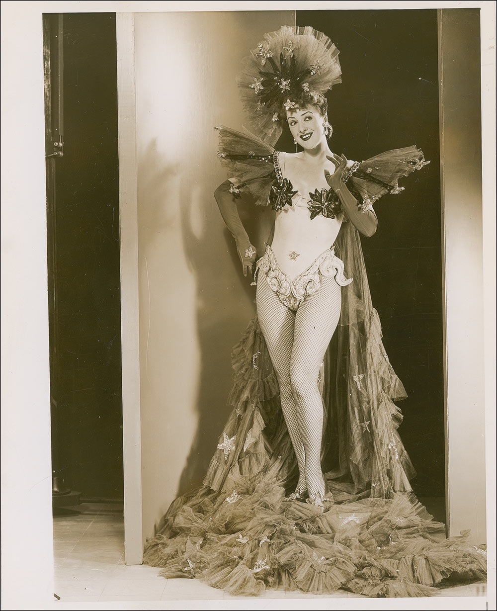 Vintage ink signature and inscription, “To Ann, Greetings, Gypsy Rose Lee,” on an off-white 5.25 x 4.5 album page with a small clipped photo of Lee affixed to lower right. In very good condition, with scattered creases and wrinkles, mild toning to edges, and pencil notation to top left. Accompanied by an unsigned vintage 8 x 10 glossy photo. Pre-certified PSA/DNA and RRAuction COA.