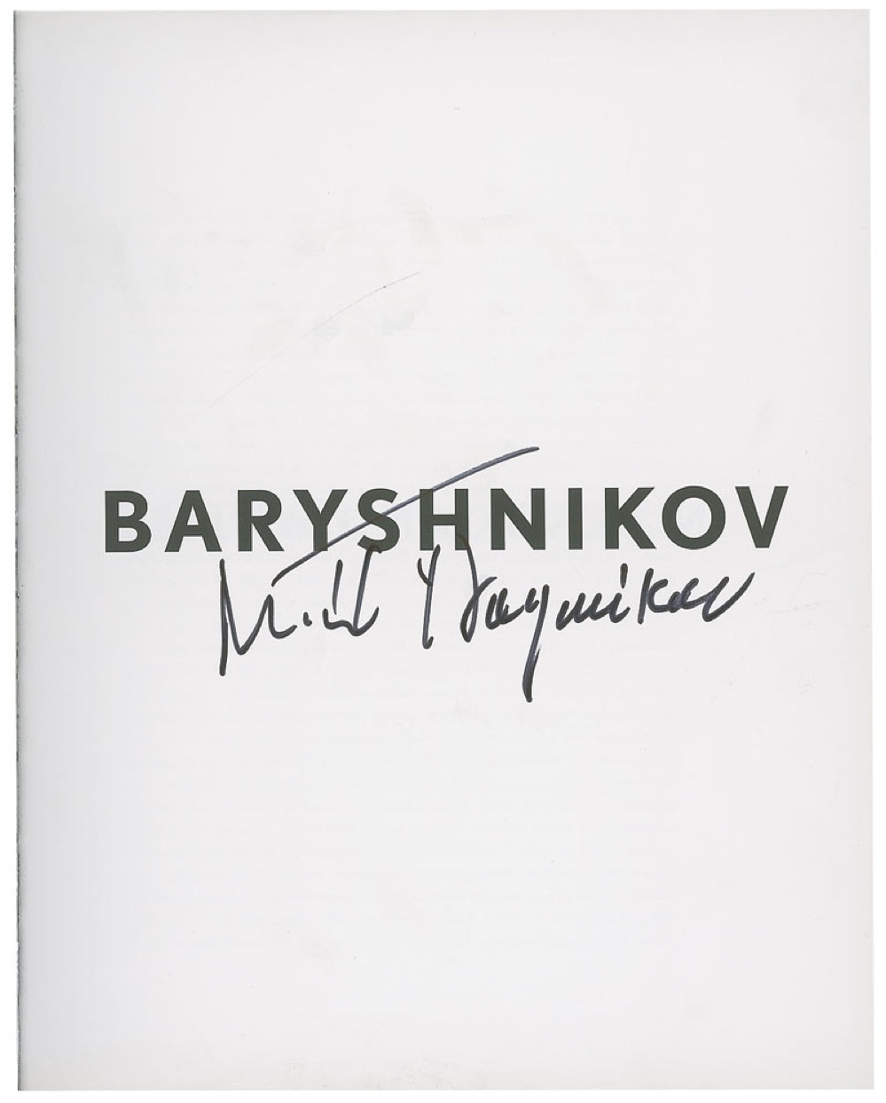 Signed book: Baryshnikov: In Black and White. First US edition, first printing. NY: Bloomsbury, 2002. Hardcover with dustjacket, 8.5 x 10.5. Signed on the half-title page in black felt tip. In fine condition, with some scattered light wear to dustjacket. A beautiful volume featuring numerous black and white photos of the famed dancer. Pre-certified PSA/DNA and RRAuction COA.