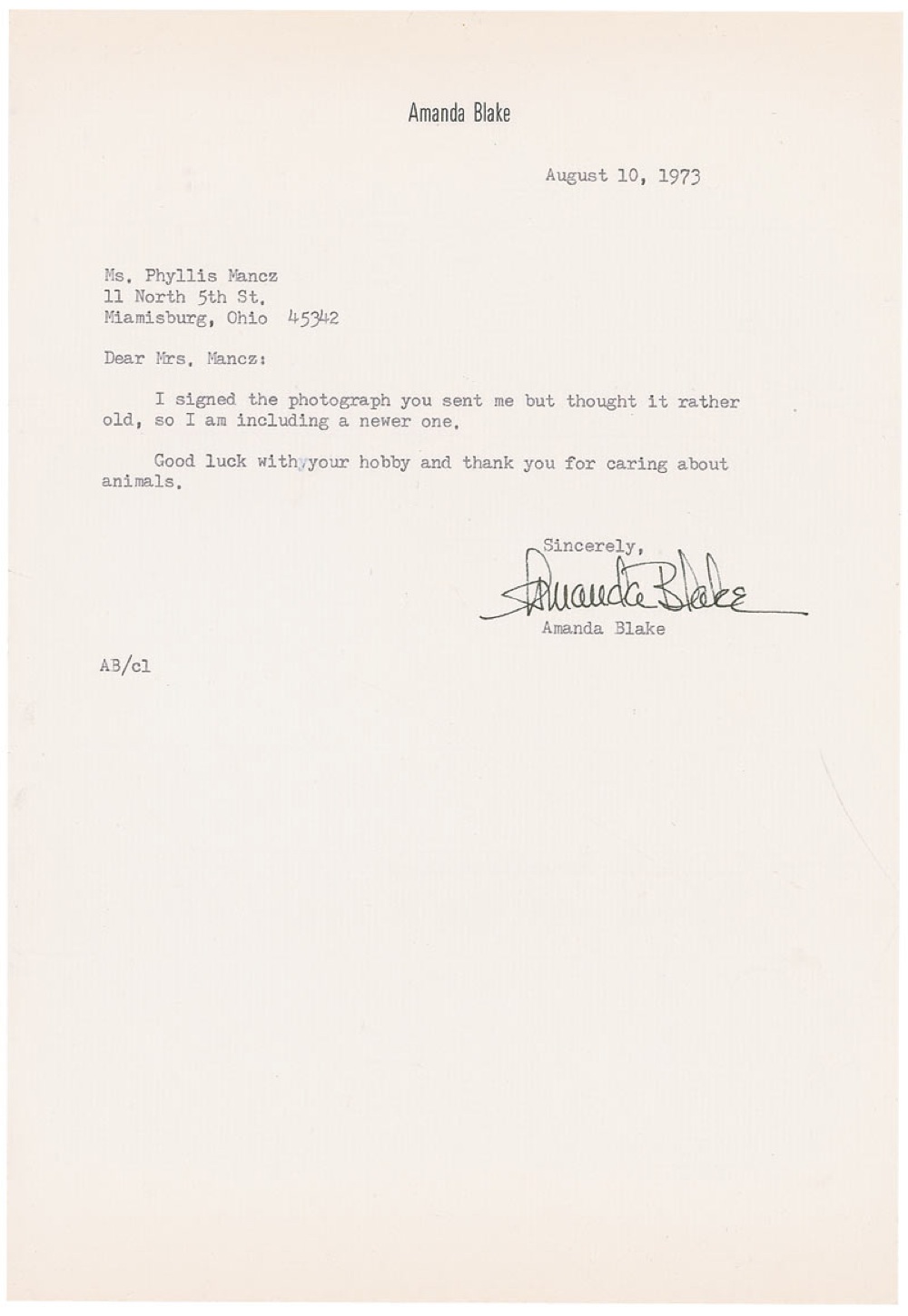 Amanda Blake Photograph and Letter