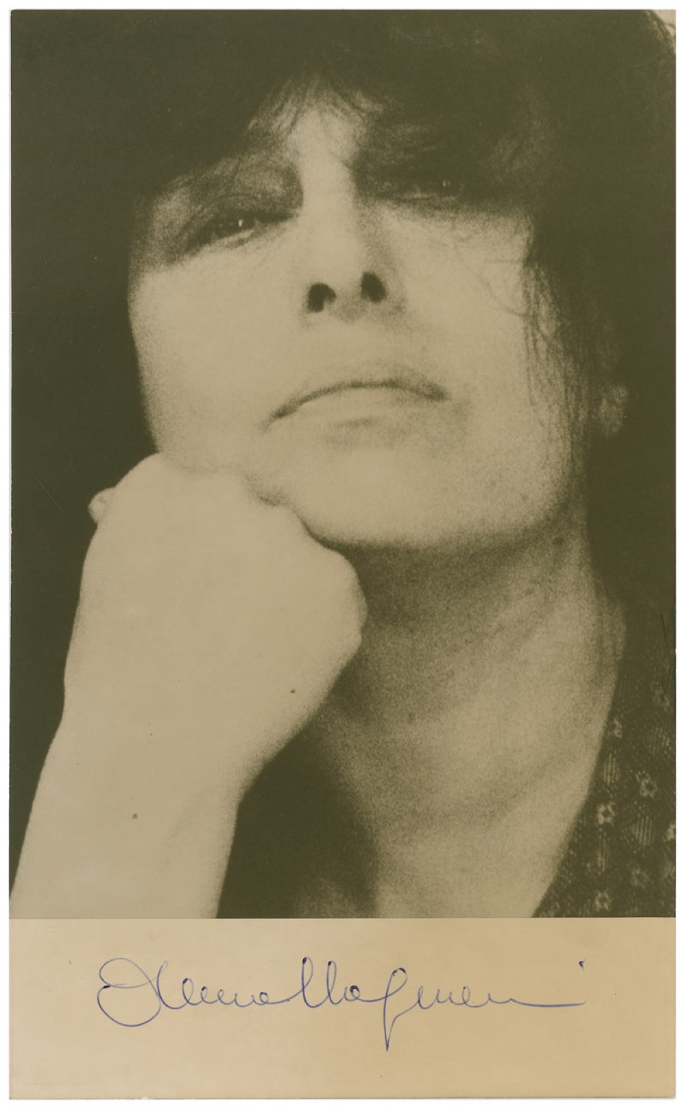 Italian actress (1908–1973) who won an Academy Award for her role in the 1955 film The Rose Tattoo. Matte-finish 5.5 x 9.25 close-up photo, signed in blue ballpoint. In fine condition, with lightly trimmed edges. Pre-certified PSA/DNA and RRAuction COA.