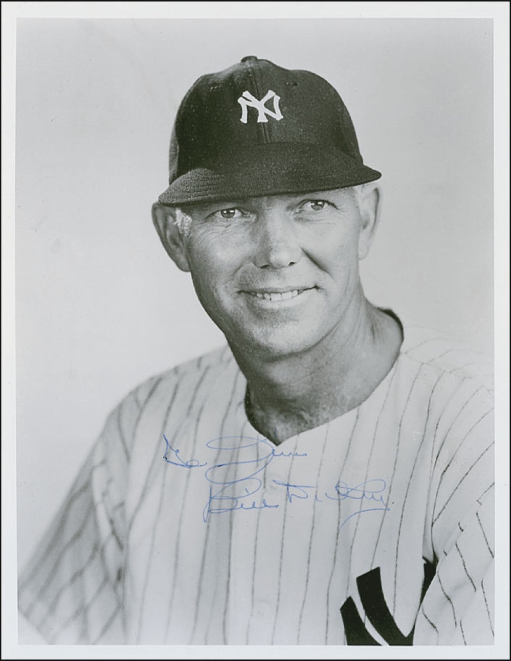 Three glossy 8 x 10 photos, one in color, each signed in felt tip or ballpoint by the respective Hall of Famer shown. Signers are: Bill Dickey (ins), Monte Irvin (adding “Best Wishes”), and Phil Rizzuto. In overall fine condition, with scattered bends and creases. RRAuction COA.