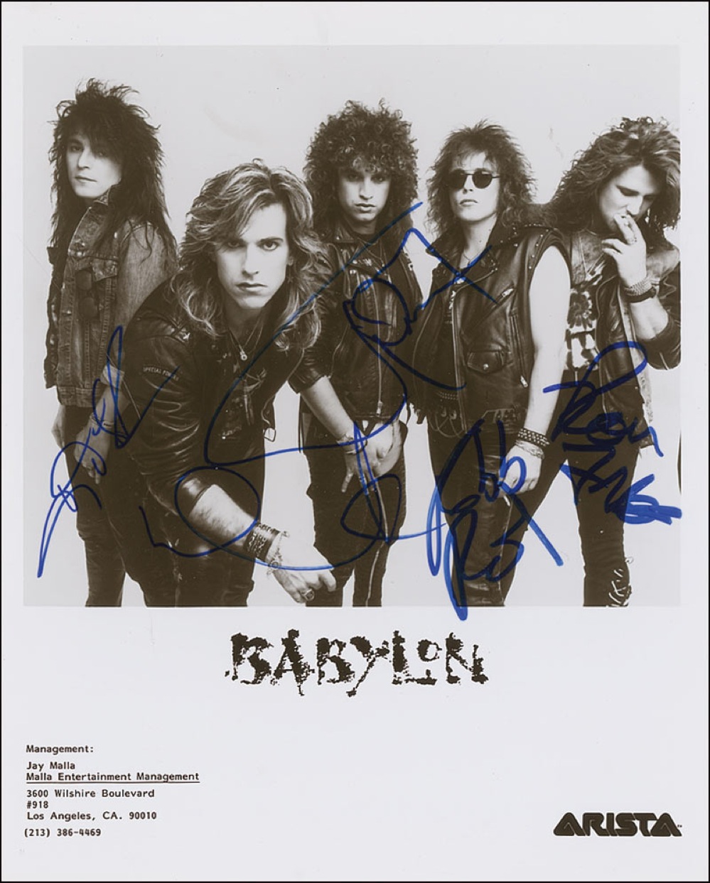 Glossy 8 x 10 Arista publicity photo of the group, signed in blue felt tip by Derek Davis, Dan De La Rosa, Ron Freschi, Jamey Pacheco, and Robb Reid. In fine condition. RRAuction COA.