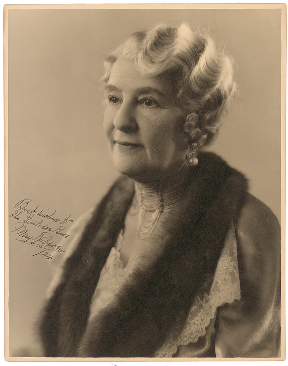 Vintage matte-finish 11 x 14 Carl DeVoy photo, signed and inscribed in fountain pen, “Best wishes to the Gittleson Bros, May Robson / 34.” In fine condition, with trivial surface marks. Pre-certified PSA/DNA and RR Auction COA.
