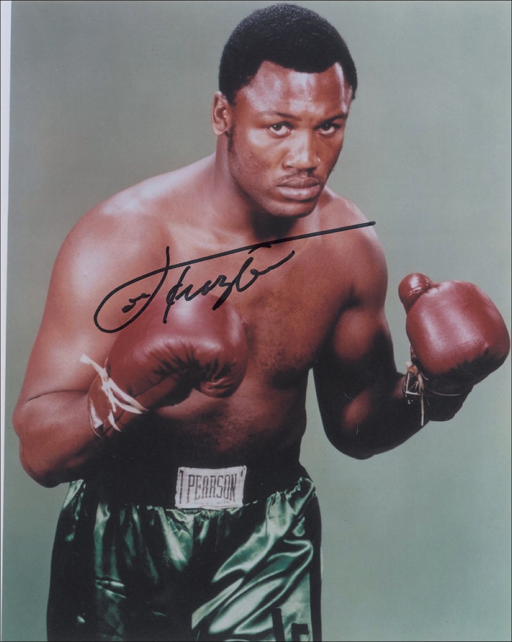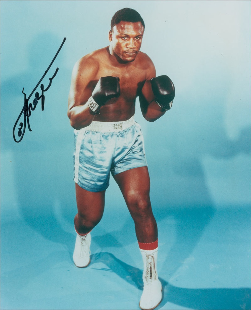 Two different color 8 x 10 photos, one glossy and one satin-finish, featuring Frazier in a pugilistic pose, each signed in black felt tip. In fine condition. RR Auction COA.