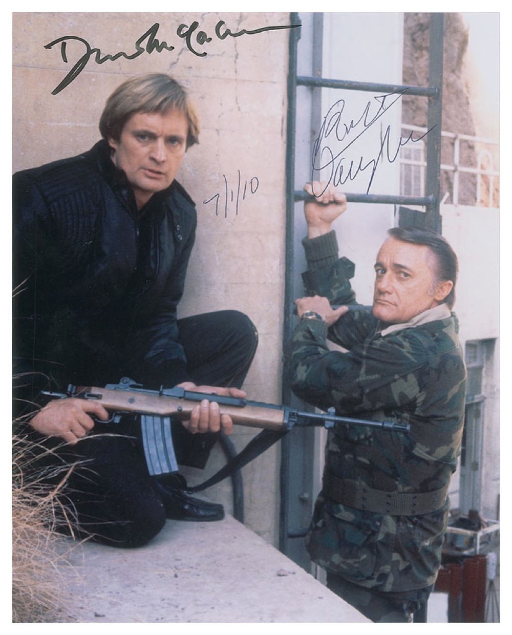 Color glossy 8 x 10 photo from the show, signed in black felt tip by David McCallum and in black ballpoint by Robert Vaughn, adding “7/1/10.” In very fine condition. Pre-certified PSA/DNA and RR Auction COA.