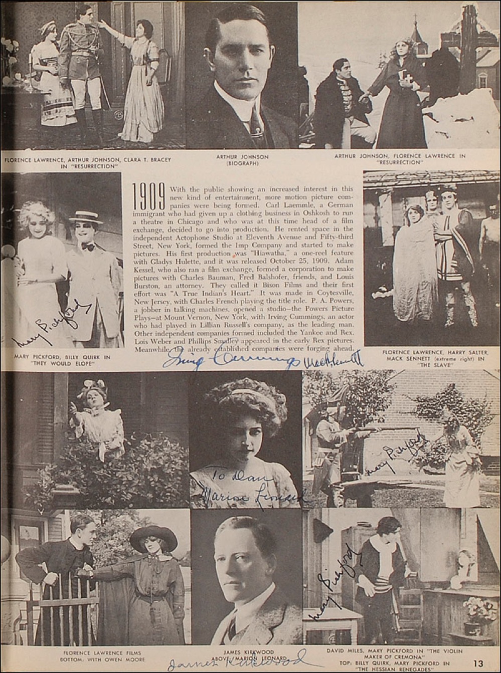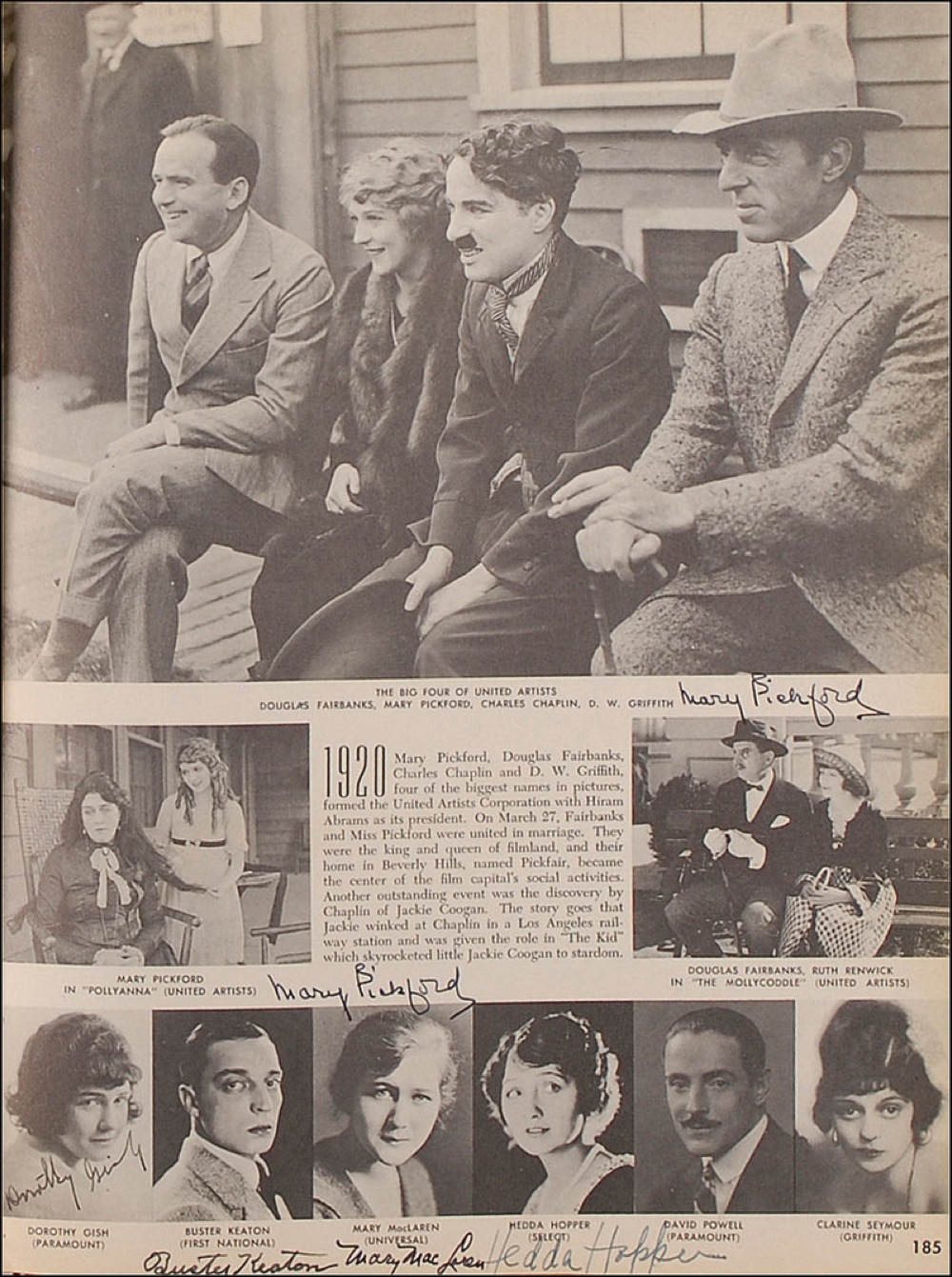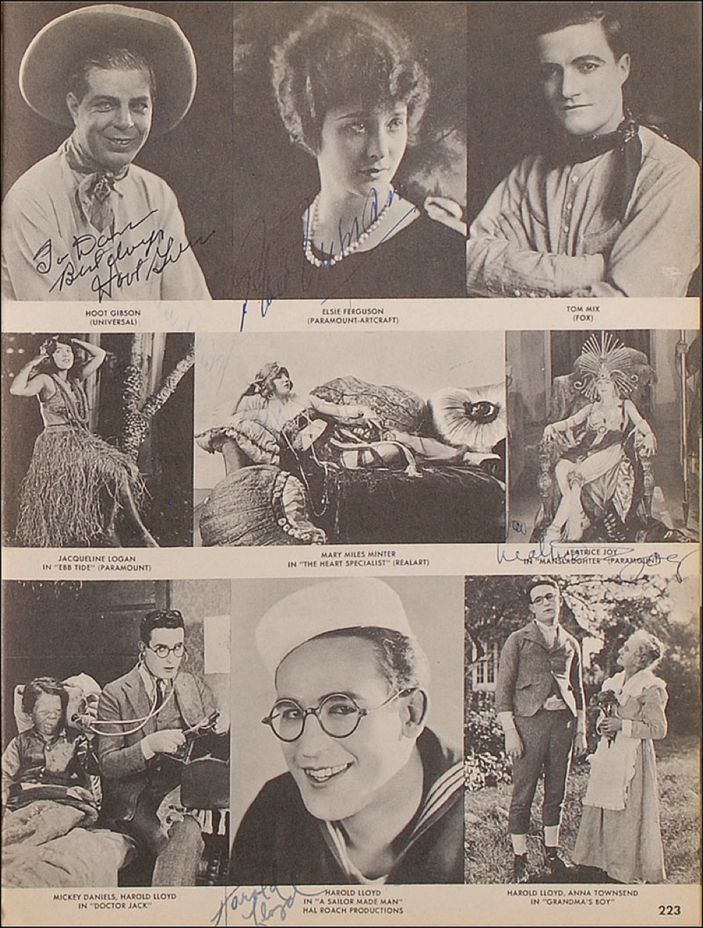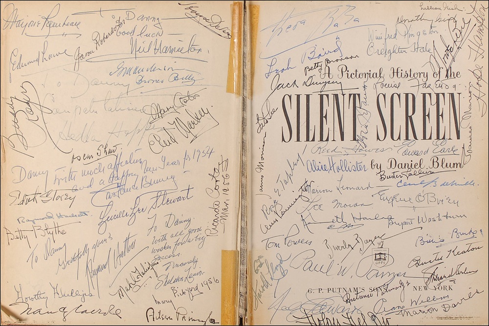 Signed book: A Pictorial History of the Silent Screen. First edition. NY: G.P. Putnam’s Sons, 1953. Hardcover with dustjacket, 9.5 x 12.5, 334 pages. Signed and inscribed in ink throughout the book to author Daniel Blum by approximately 1,600 icons of the silent film era including: