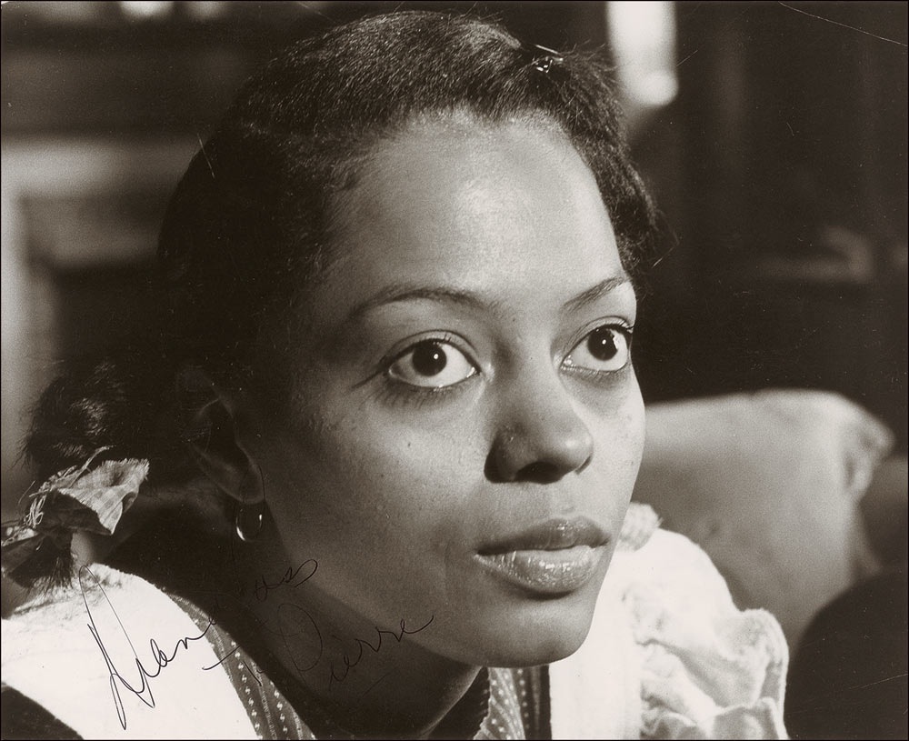 Vintage glossy 10 x 8 photo from Lady Sings the Blues, signed and inscribed in black ink “Diana Ross to Pierre.” In very good condition, with corner creases, moderate contrast to signature and inscription, and scattered surface marks. Pre-certified PSA/DNA and RR Auction COA.