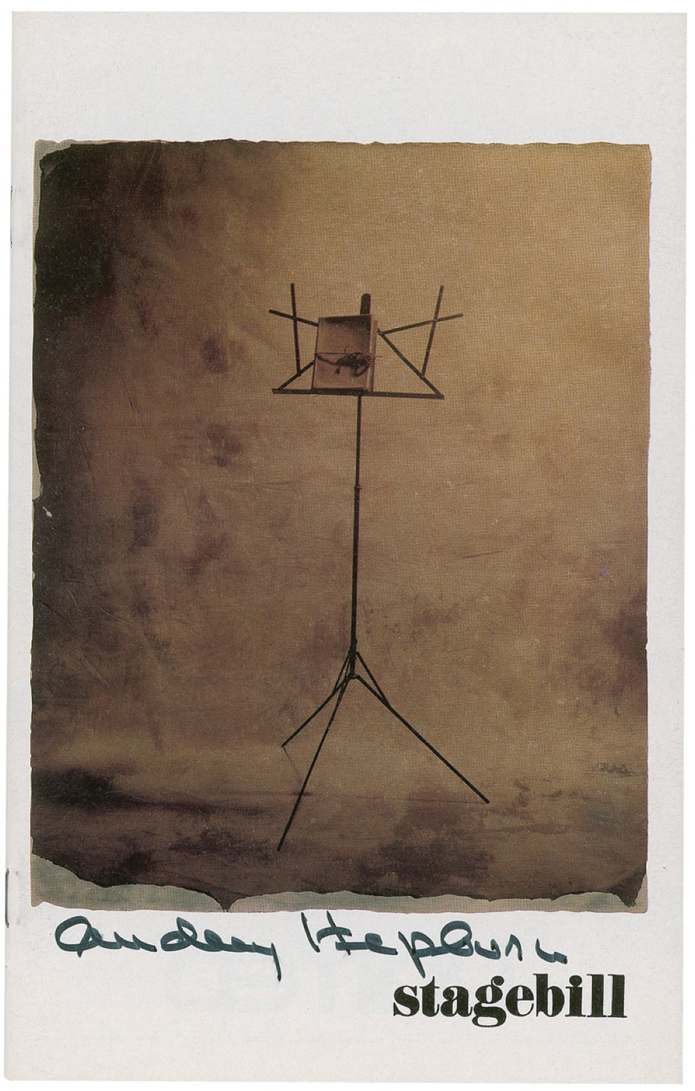Stagebill for The New World Symphony, 45 pages, 5.75 x 9, signed in the bottom border on the front cover in black felt tip, “Audrey Hepburn.” In fine condition. Pre-certified PSA/DNA and RR Auction COA.