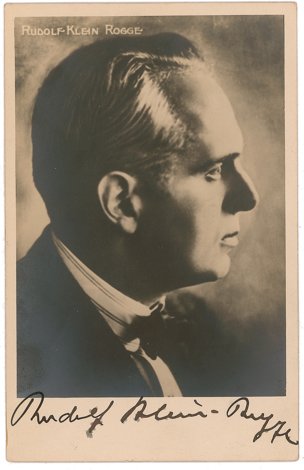 German film actor (1885–1955), who was a favorite of director Fritz Lang, appearing in many of his Weimar-era works, including the cult classic, Metropolis. Vintage 3.5 x 5.5 postcard photo, signed in fountain pen. A fingerprint to the bottom left corner, silvering to the darker areas of the image, and a few slight spots where the ink has bled in the signature, otherwise fine condition. Pre-certified PSA/DNA and RR Auction COA.