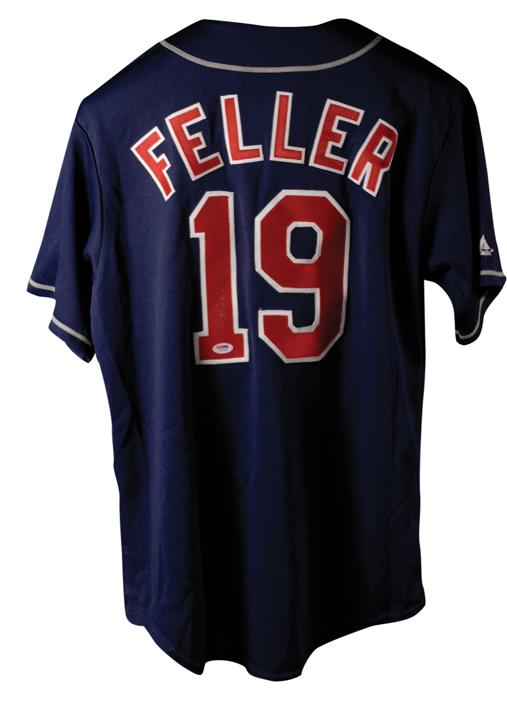 Official Majestic replica Cleveland Indians baseball jersey, with sewn on letters and numbers, signed in silver ink on the number on the back. In fine condition, with a PSA/DNA authentication label affixed to number. RRAuction COA.