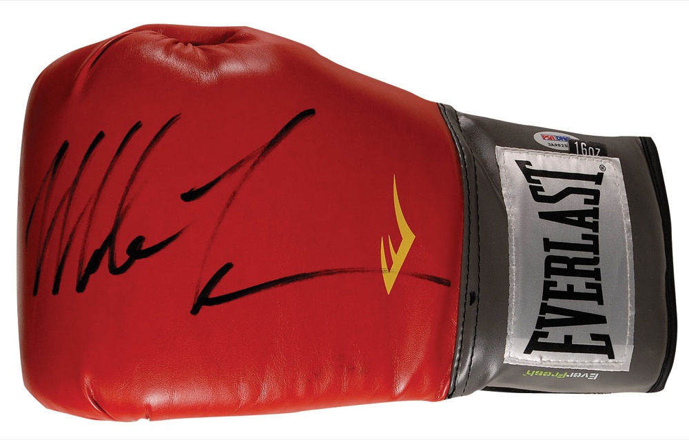 Everlast left-handed 16-ounce boxing glove signed in black felt tip on the top. In fine condition, with a PSA/DNA authentication label affixed to glove. Accompanied by a certificate of authenticity from PSA/DNA. RRAuction COA.