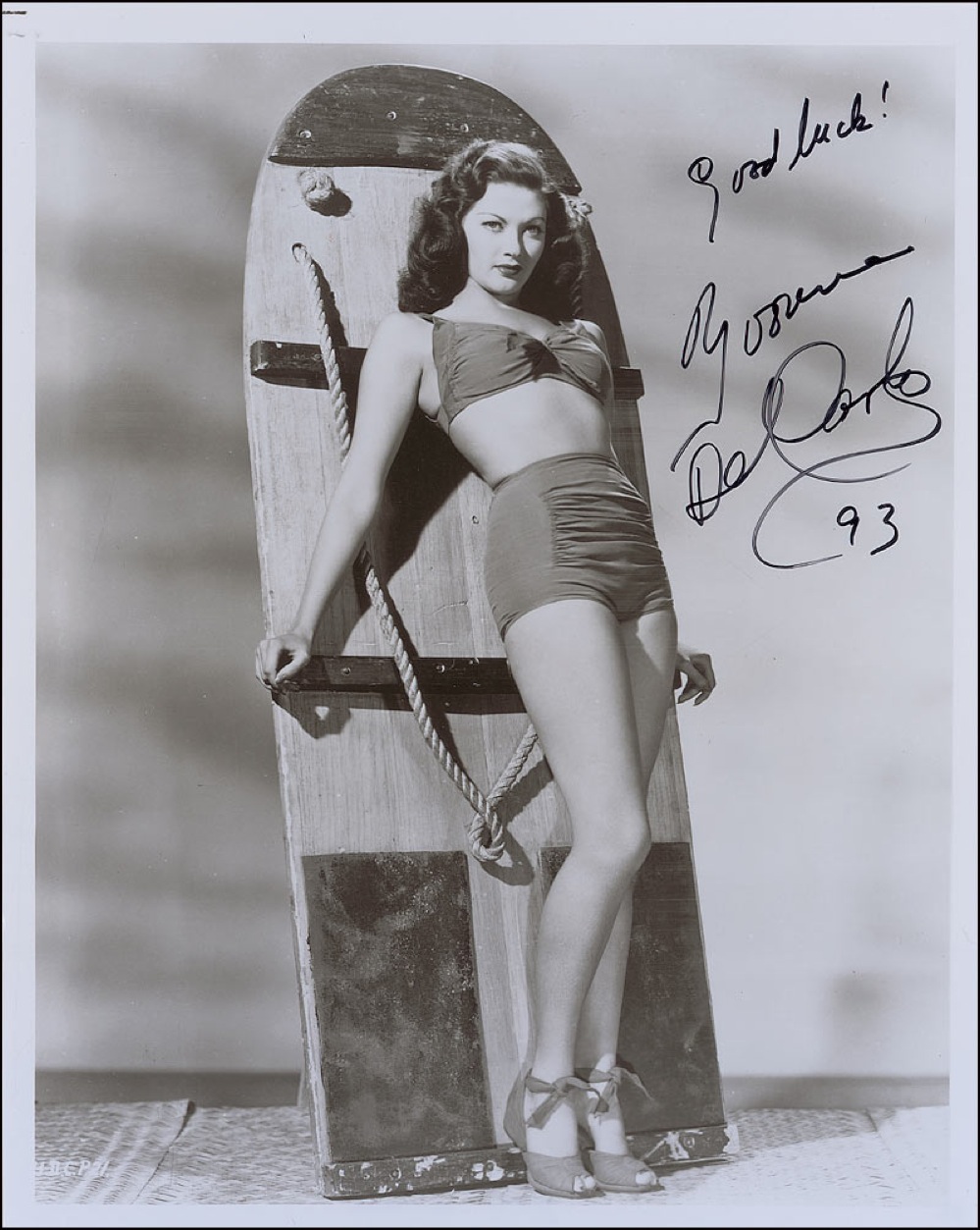 Sexy glossy 8 x 10 photo of the actress in a two-piece bathing suit, signed in black felt tip, “Good luck! Yvonne DeCarlo 93.” In fine condition. Pre-certified PSA/DNA and RR Auction COA.