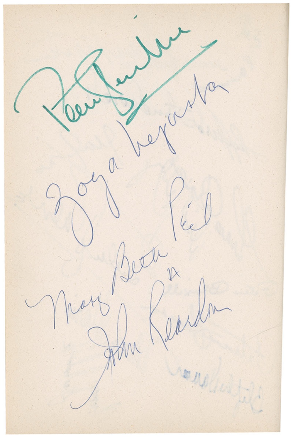 Signed book: Summer and Smoke. NY: New Directions, 1948. Hardcover, 5.5 x 8, 130 pages. Signed in blue ballpoint and felt tip on the half-title page, the reverse of that page, and the title page by Tennessee Williams and 22 original cast members of the 1976 television adaptation, Eccentricities of a Nightingale, including Blythe Danner, Frank Langella, Geraldine Page, and also by Tennesse Williams. In fine condition, with uniform toning to the pages, and a loose, but intact hinge. Pre-certified PSA/DNA and RR Auction COA.