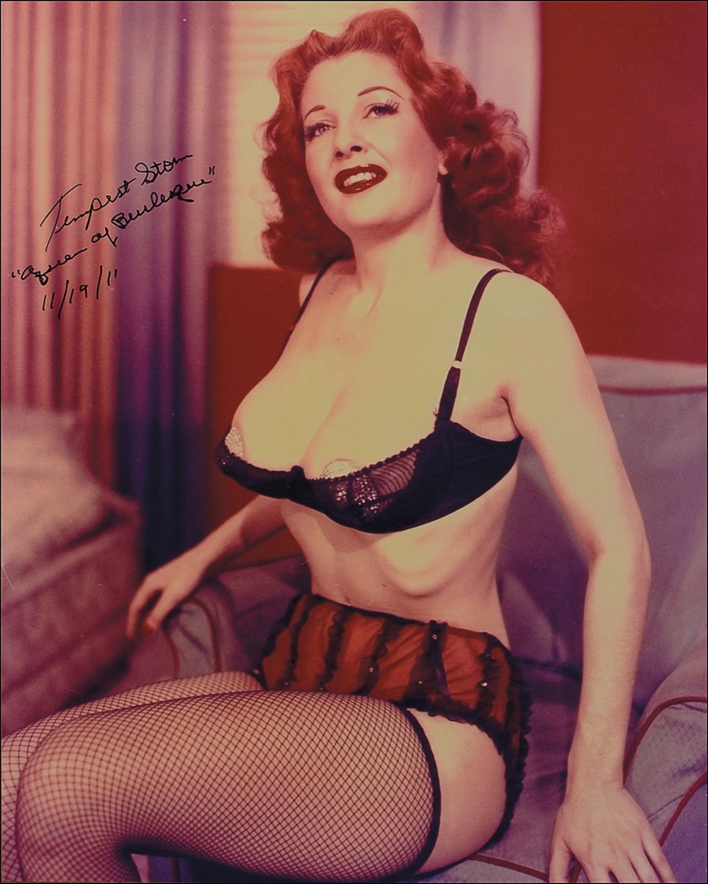Racy color satin-finish 16 x 20 photo of the performer in a revealing bikini, signed in black felt tip, “Tempest Storm ‘Queen of Burlesque,’ 1/19/11.’” In fine condition, with some scattered light creasing. Pre-certified PSA/DNA and RR Auction COA.