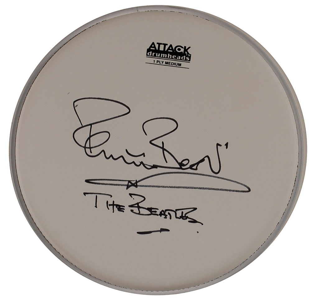Unused coated 10” Attack drumhead signed in black felt tip, “Pete Best, The Beatles.” In fine condition. Pre-certified Roger Epperson/REAL and RR Auction COA.