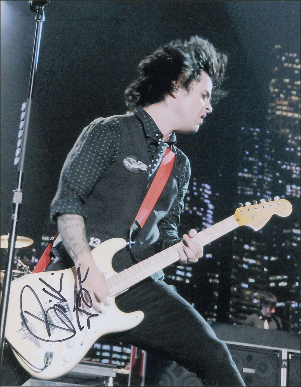 Vibrant color satin-finish 11 x 14 photo of the front man on stage, signed in black felt tip. In fine condition, with some trivial surface marks. RRAuction COA.
