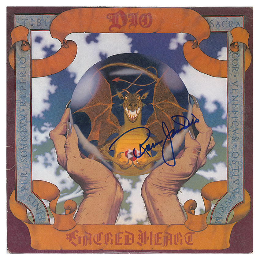 Sacred Heard album signed on the front cover in blue felt tip. In fine condition, with some light edge creases. The record is included. RRAuction COA.
