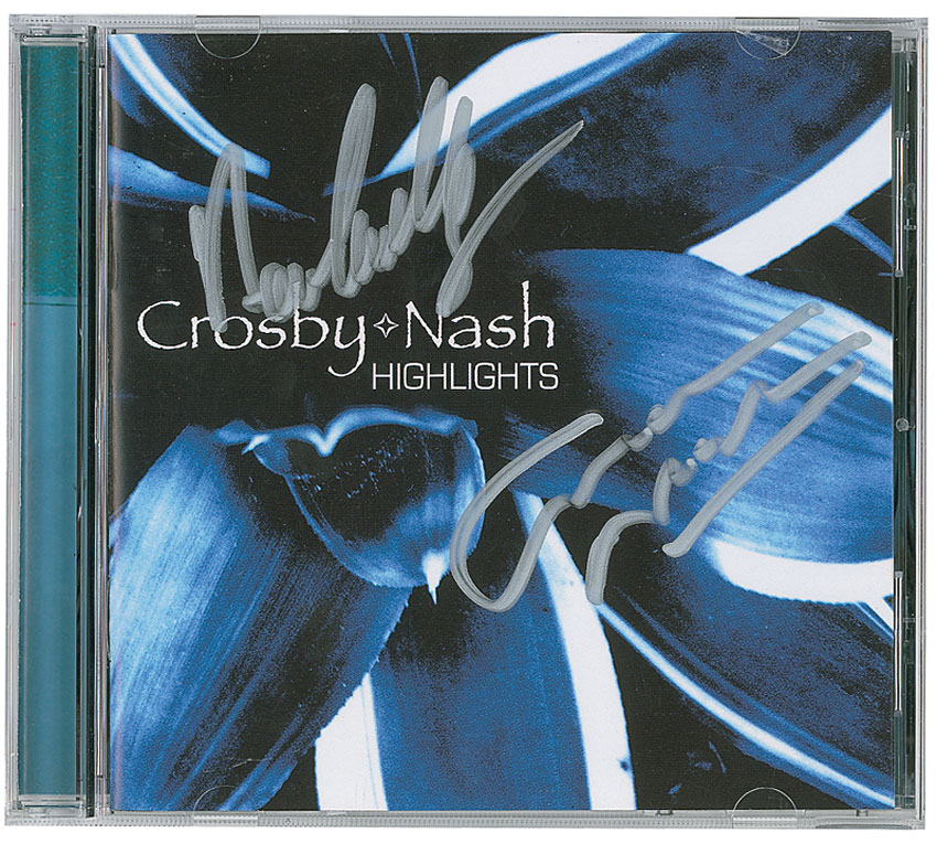 Highlights CD signed on the front of the booklet in silver ink by David Crosby and Sam Nash. In fine condition. The CD is included. Pre-certified Roger Epperson/REAL and RR Auction COA.