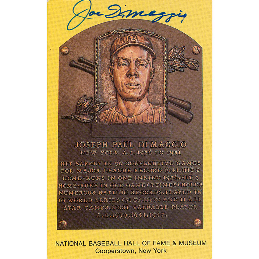 Gold Hall of Fame plaque card signed across the top in blue felt tip. In fine condition. Pre-certified Steve Grad/PSA/DNA and RR Auction COA.