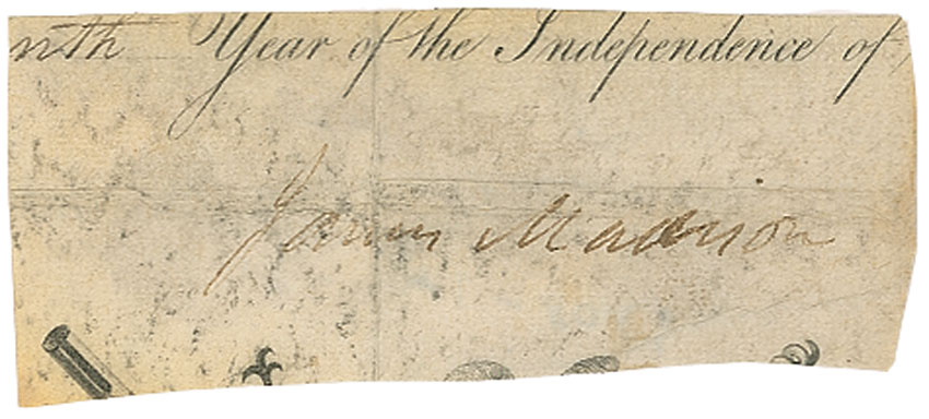 Ink signature on an off-white 4 x 1.75 slip affixed to an 8.5 x 11 sheet. In good condition, with a central horizontal and vertical fold, light toning and heavy rubbing over the signature. Pre-certified John Reznikoff/PSA/DNA and RR Auction COA.