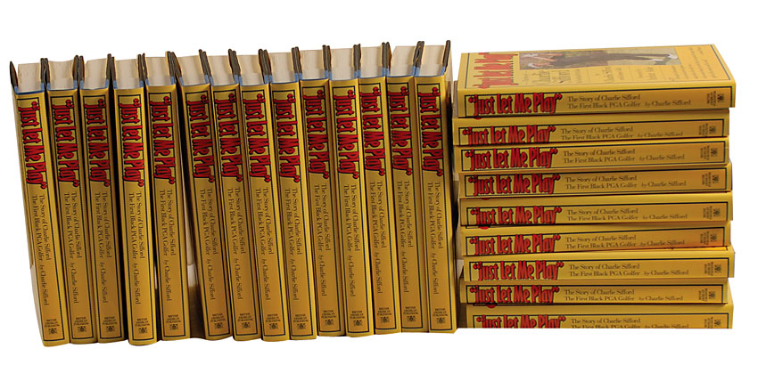 African American former professional golfer who helped desegregate the PGA. As the first African-American to play the PGA and to be inducted into the World Golf Hall of Fame, Sifford has been referred to as the Jackie Robinson of golf. Twenty-three hardcover editions of Just Let Me Play: The Story of Charlie Sifford, each signed vertically in black felt tip on the first free end page. In fine condition. Oversized. RRAuction COA.