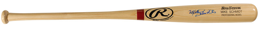 Official Rawlings Big Stick Mike Schmidt model baseball bat signed in blue felt tip on the barrel. In fine condition. Pre-certified Steve Grad/PSA/DNA and RR Auction COA.
