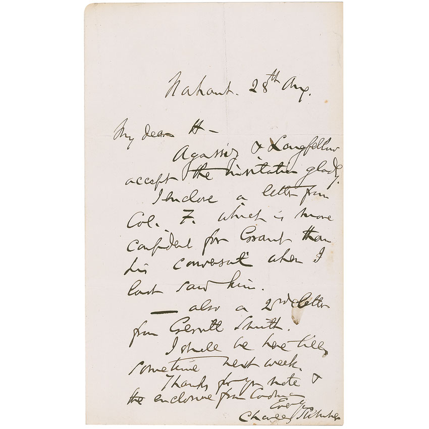 Charles Sumner: “Agassiz & Longfellow accept the invitation gladly”