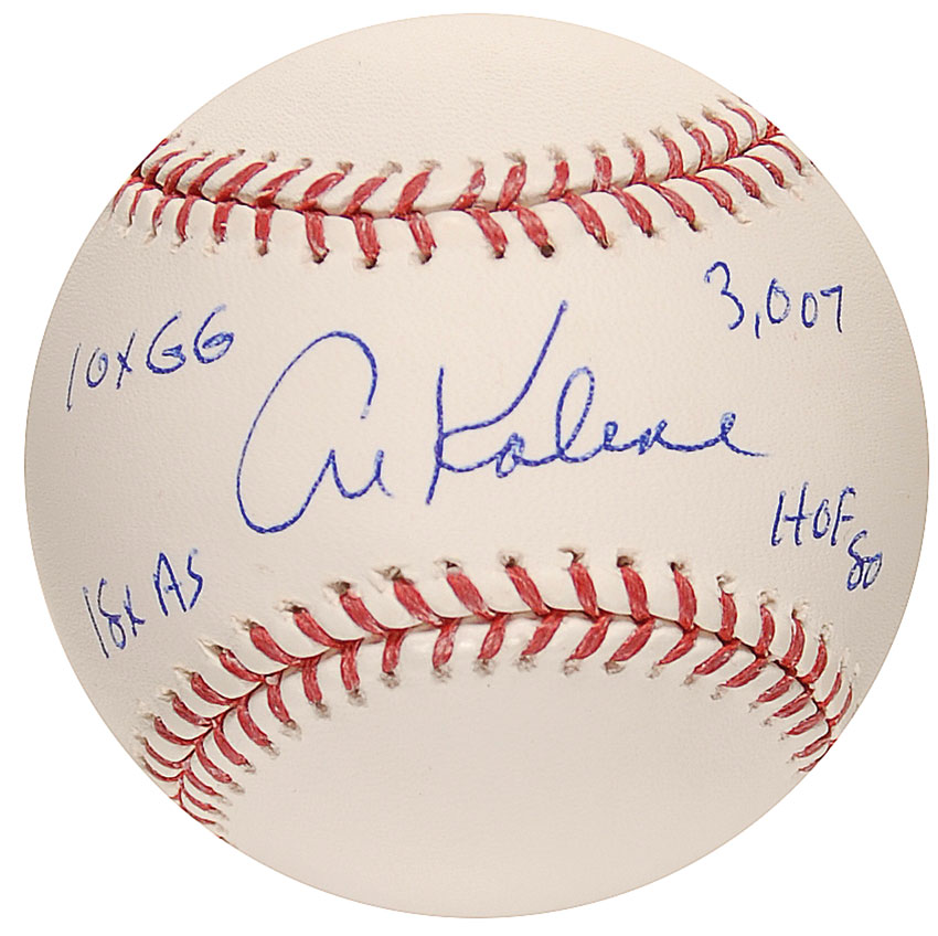 Official Rawlings Major League baseball signed in blue ballpoint on the sweet spot, adding “10xGG,” “3007,” “18xAS,” and “HOF 80,” around his signature. In fine condition. Pre-certified Steve Grad/PSA/DNA and RR Auction COA.