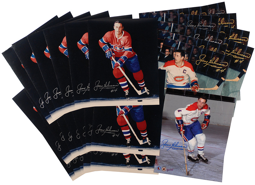 Member of 10 Stanley cup teams and recognized as one of the greatest players in hockey history. Twenty-eight color glossy 8 x 10 photos of Beliveau on the ice for the Canadiens, each signed in silver or gold ink by Beliveau. In fine condition. RRAuction COA.