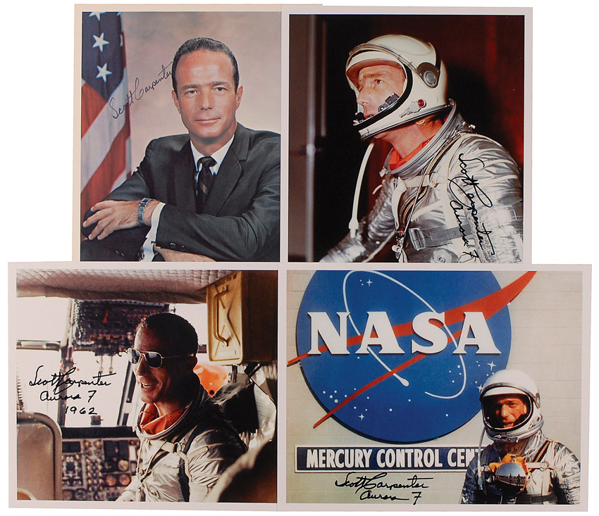 Four color signed photos, three satin-finish and one NASA photo, two 8 x 10 and two 10 x 8, each signed in black felt tip by Carpenter. In fine condition. Pre-certified Steve Zarelli and RR Auction COA.