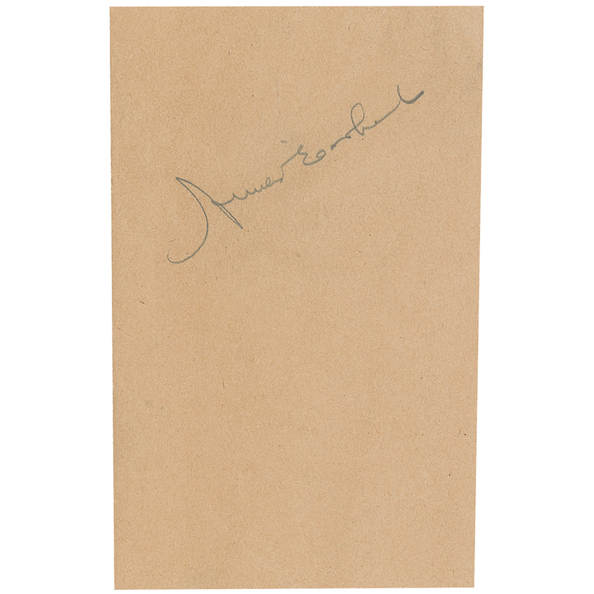 Vintage pencil signature on an off-white 3.25 x 5 slip. In fine condition. RRAuction COA.