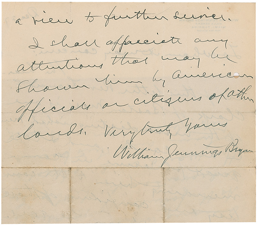 William Jennings Bryan: “The bearer of this letter…is one of the most distinguished men in this country”
