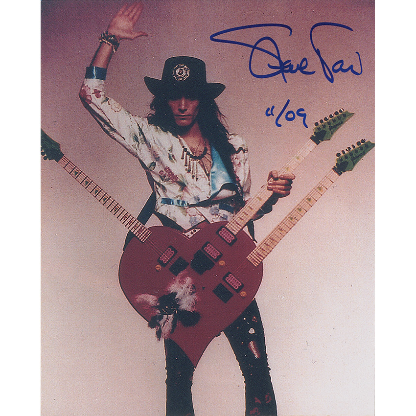 Two glossy 8 x 10 photos, one color, of Vai posing with his guitars, each signed in blue felt tip. In fine condition. Pre-certified Roger Epperson/REAL and RR Auction COA.