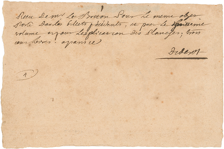 A rare receipt from the great French philosopher for the first Encyclopedia