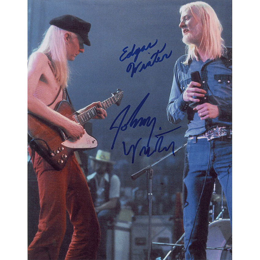 Color glossy 11 x 14 photo of the brothers on stage, signed in blue felt tip by both. In fine condition. Pre-certified Roger Epperson/REAL and RR Auction COA.