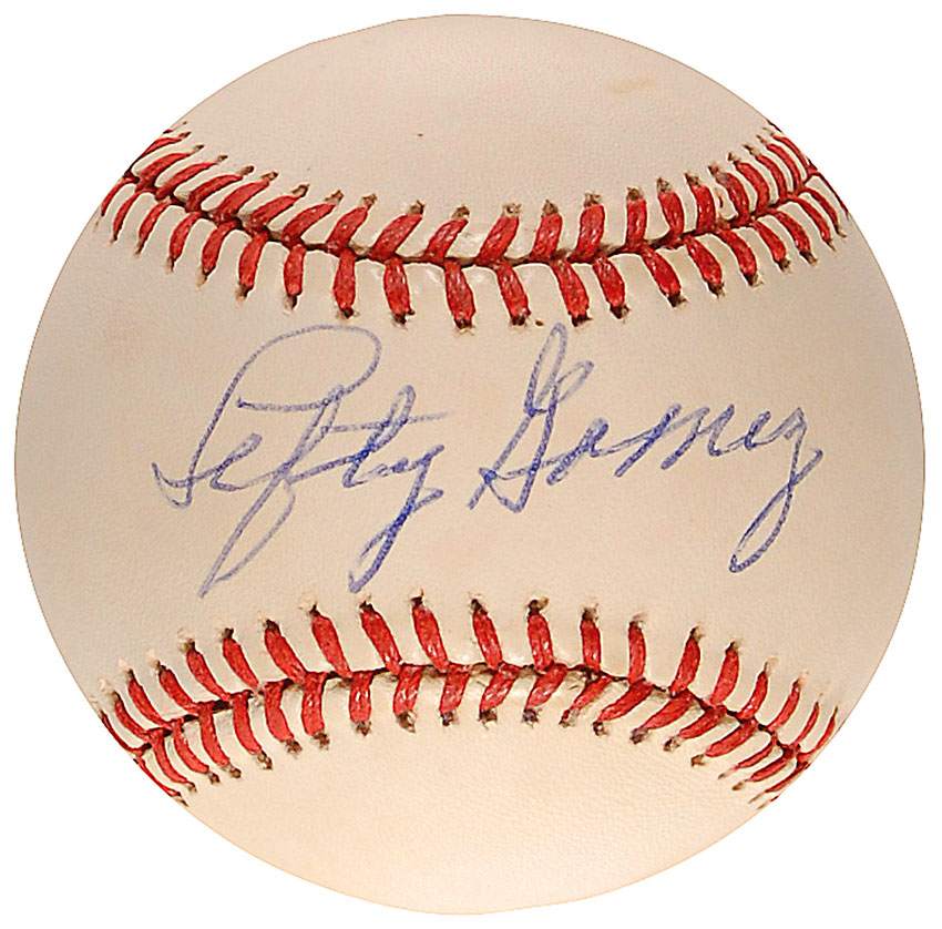 Official Rawlings American League baseball signed in blue ballpoint on the sweet spot. In fine condition, with a couple mild spots of toning to the side panels. Pre-certified Steve Grad/PSA/DNA and RR Auction COA.