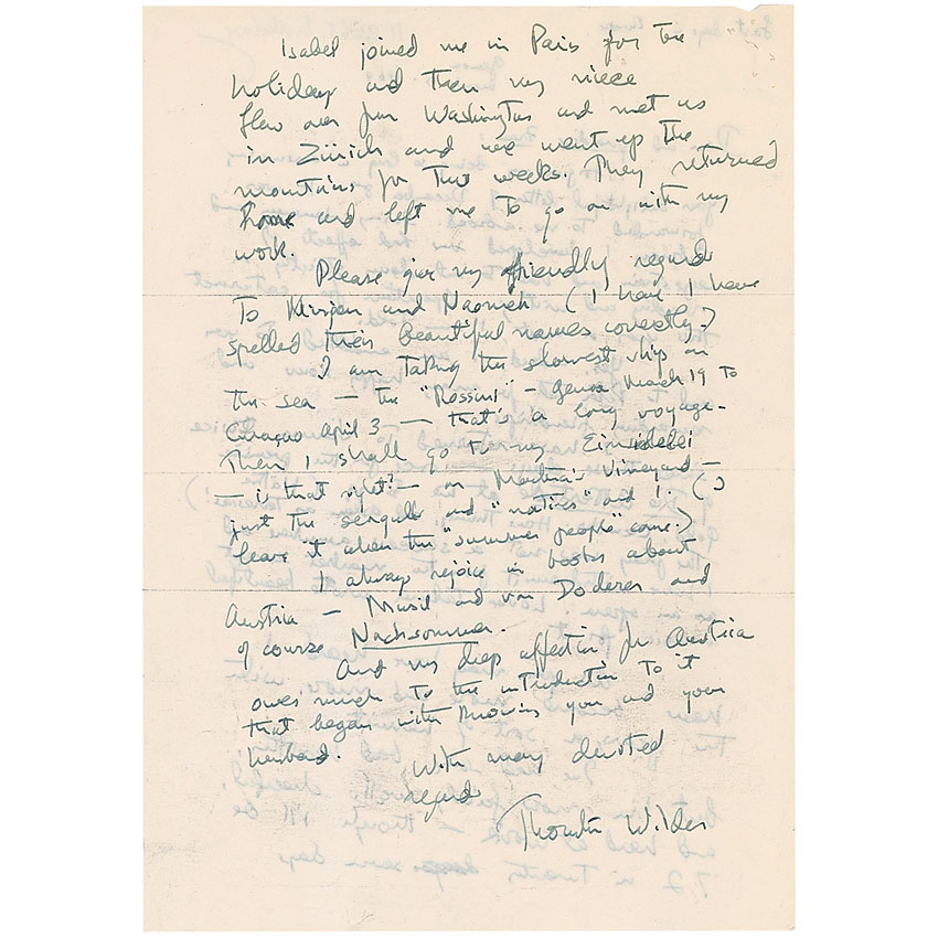 Thornton Wilder: “As you may have heard I have become more and more, with the years, a sort of hermit...but now I’m fairly well, cheerful, and hard at work”