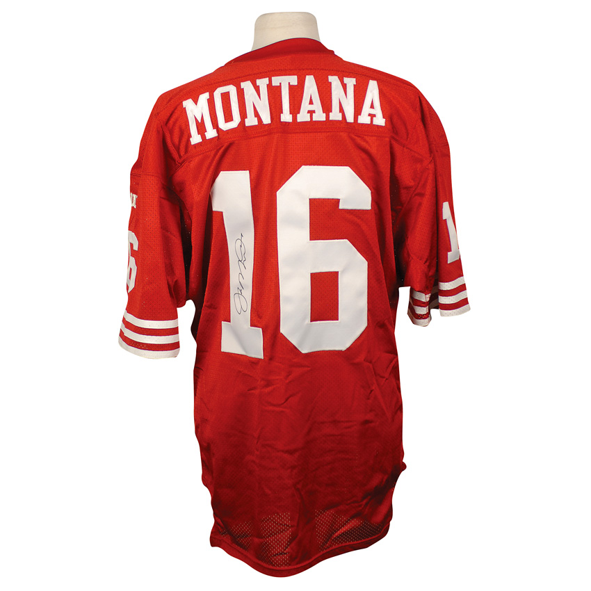 Official Wilson replica San Francisco 49ers football jersey, with sewn on letters and numbers, signed in black felt tip on the number on the back. In fine condition. Pre-certified Steve Grad/PSA/DNA and RR Auction COA.