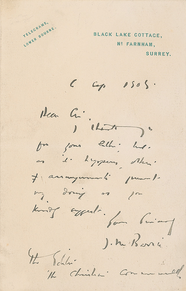 James M. Barrie Handwritten Letter Signed