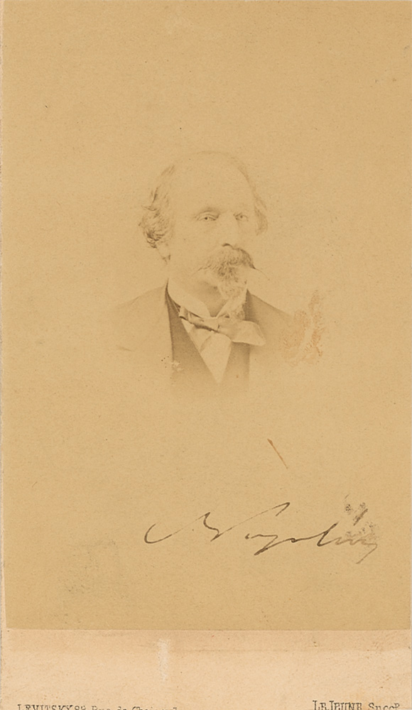 President of the French Second Republic and as Napoleon III, the ruler of the Second French Empire (1808–1873). Original 2.25 x 3.75 carte-de-visite portrait by Levitsky of Paris, signed at the bottom of the image in black ink, “Napoleon.” In very good condition, with the image a bit faded, trimmed edges, and a slight brush to the signature. RR Auction COA.