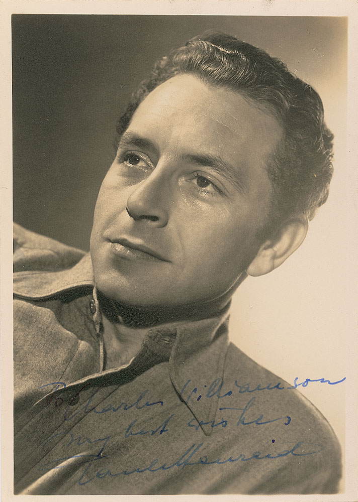 Vintage matte-finish 5 x 7 head-and-shoulders photo, signed and inscribed in fountain pen “To Charles Williamson, my best wishes, Paul Henreid.” In fine condition. Pre-certified PSA/DNA and RR Auction COA.
