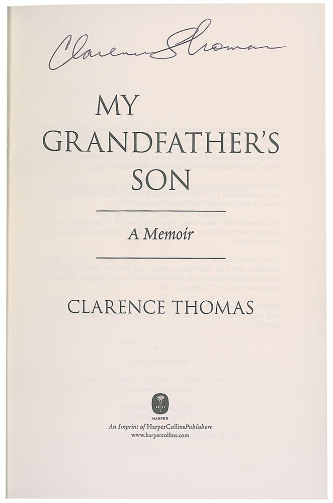 Two first edition hardcover books: Lazy B by Sandra Day O’Connor and My Grandfather’s Son by Clarence Thomas, each signed in black felt tip or ballpoint on the title page by the respective justice. In overall fine condition. RRAuction COA.