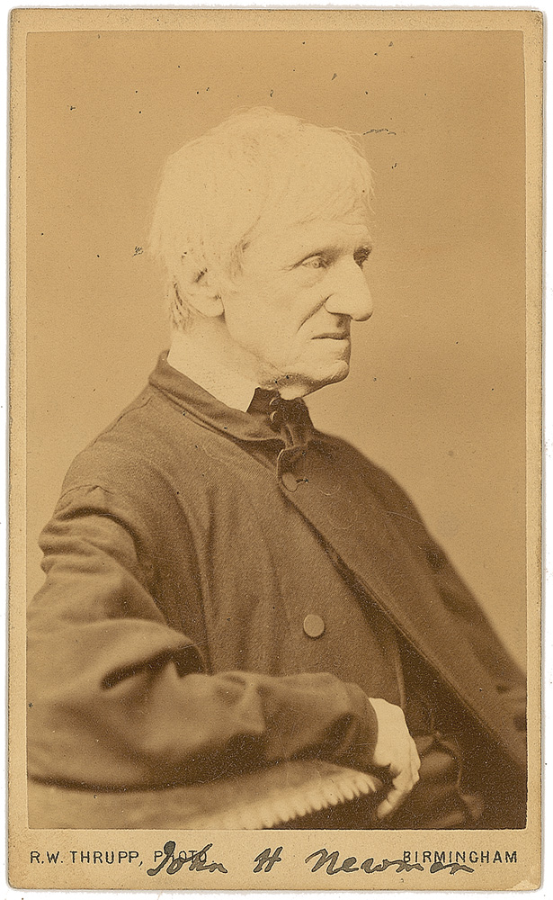 Anglican leader of the Oxford Movement who became a Roman Catholic and wrote the well known hymn ‘Lead, Kindly Light.’ Original 2.5 x 4 carte-de-visite portrait of Newman, by R. W. Thrupp of Birmingham, signed in the lower border in black ink, “John H. Newman.” In fine condition, with silvering to dark areas of the image. RR Auction COA.
