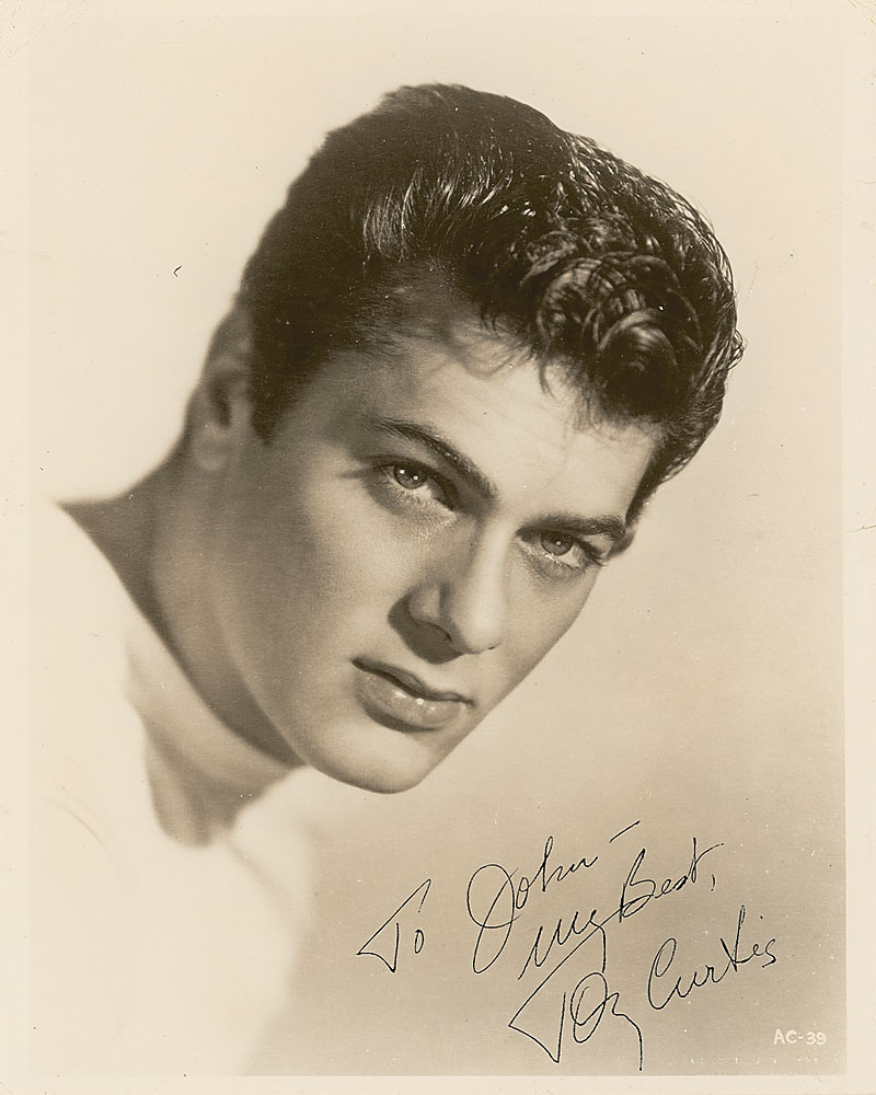 Vintage glossy 8 x 10 photo of Curtis, signed and inscribed in black ink, “To John—My best, Tony Curtis.” Scattered creases and impressions, otherwise fine condition. Pre-certified PSA/DNA and RR Auction COA.