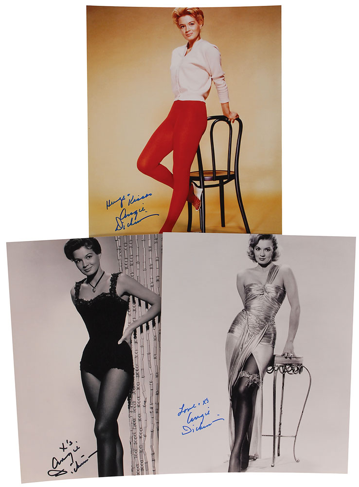 Three glossy and satin-finish 8 x 10 photos of Dickinson from early in her career, including one color, each signed in blue or black felt tip. In fine condition. RRAuction COA.
