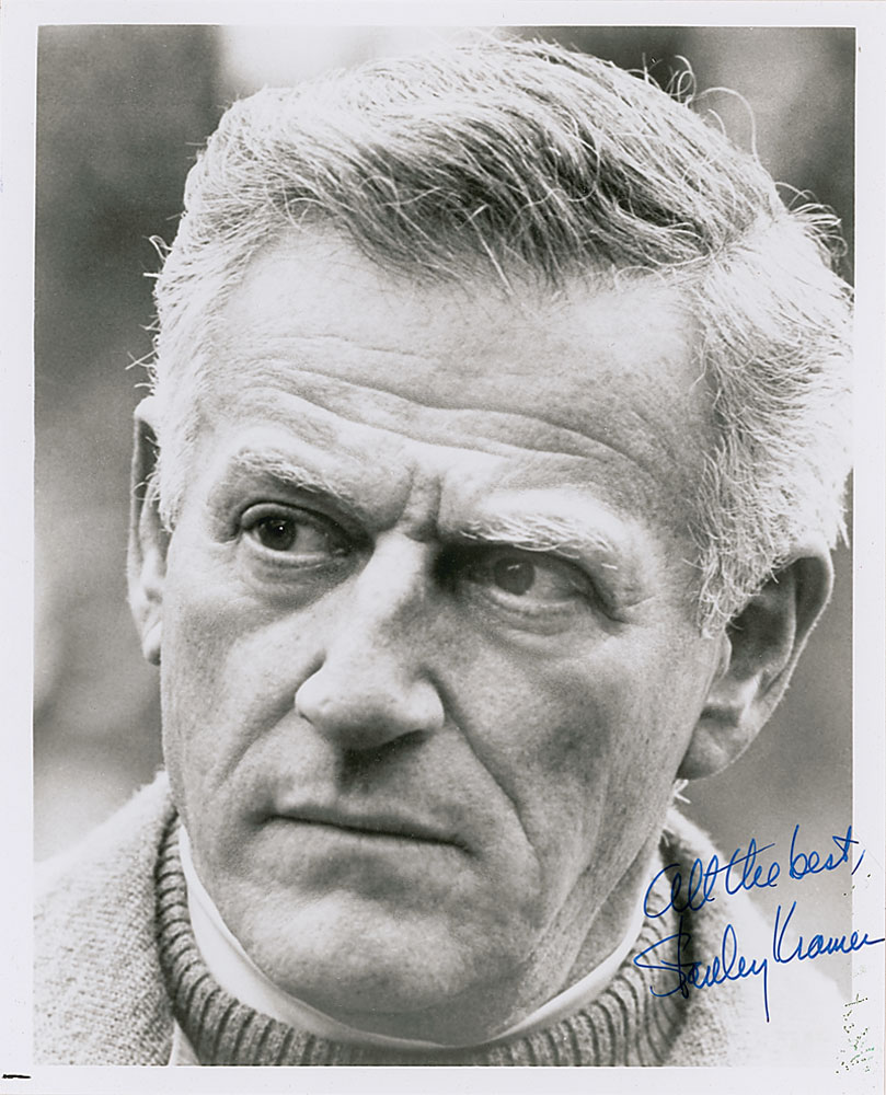 Glossy 8 x 10 close-up photo, signed in blue felt tip, “All the best, Stanley Kramer.” In fine condition, with some stray ink marks to lower right. Pre-certified PSA/DNA and RR Auction COA.