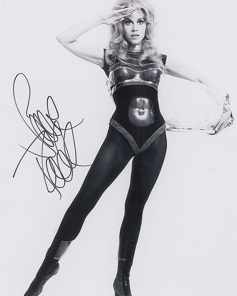 Satin-finish 8 x 10 photo of Fonda saluting, signed in black felt tip. In fine condition, with some creasing to corner tips. Pre-certified PSA/DNA and RR Auction COA.
