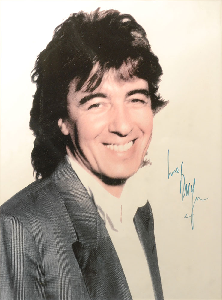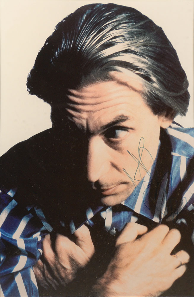 Five color 11 x 15 photos from the Stones’ Steel Wheels tour program, each signed in blue felt tip by the band member pictured: Mick Jagger, Keith Richards, Ronnie Wood, who adds a quick self-caricature sketch, Billy Wyman, and Charlie Watts. All five are triple-matted together with four stage-used guitar picks from the tour, to an overall size of 45 x 42.5. In fine condition. Pre-certified Roger Epperson/REAL and RR Auction COA.